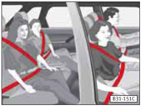 - Para obtener la máxima eficacia protectora de los cinturones se debe ir sentado correctamente; véase también la página 2.55.