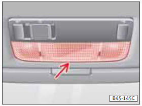 - Para sustituir las lámparas de lectura defectuosas, tirar de ellas hacia afuera. Para extraer la lámpara central, sujetarla y presionar hacia un lado.