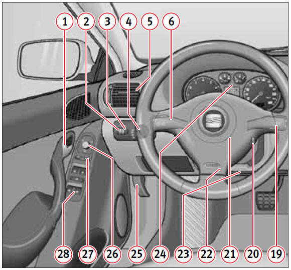 - En las versiones con volante a la derecha, la disposición de los elementos de mando es algo distinta. Pero los símbolos asignados a dichos mandos se corresponden con los de las versiones con volante a la izquierda.